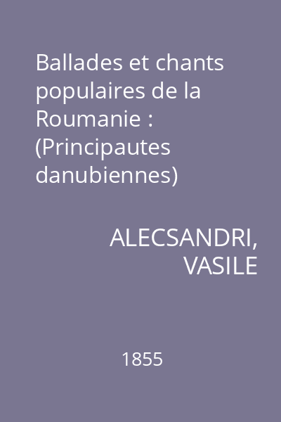 recueillis et traduits par V. Alecsandri