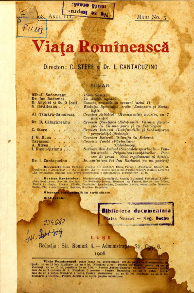 Viața Romînească: revistă literară și științifică anul III nr. 5 mai 1908