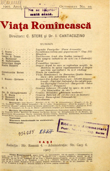 Viața Romînească: revistă literară și științifică anul II nr. 10 octombrie 1907