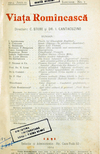 Viața Romînească: revistă literară și științifică anul IX nr. 1 ianuarie 1914