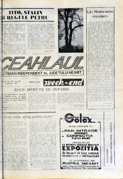 Cotidian independent al județului Neamț. Serie nouă. Primul număr: 23 decembrie...