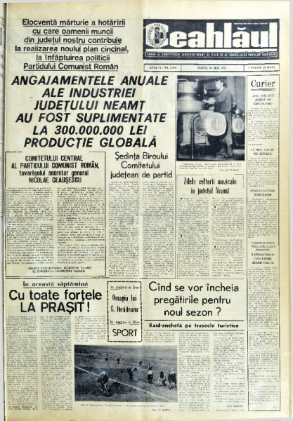 Ziarul “Ceahlăul” a apărut în urma Hotărîrii Conferinţei Naţionale a P.C.R., din...