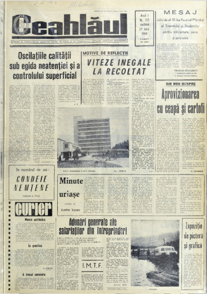 Ziarul “Ceahlăul” a apărut în urma Hotărîrii Conferinţei Naţionale a P.C.R., din...