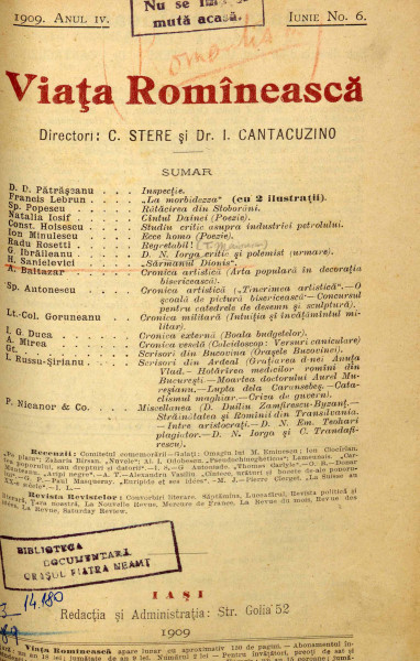 Viața Romînească: revistă literară și științifică anul IV nr. 6 iunie 1909