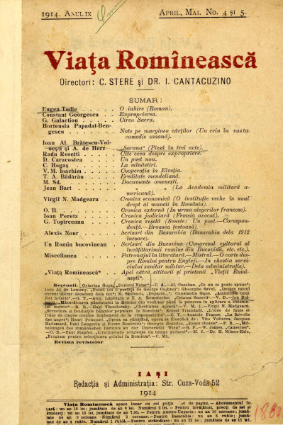 Viața Romînească: revistă literară și științifică anul IX nr. 4 şi 5 aprilie mai 1914