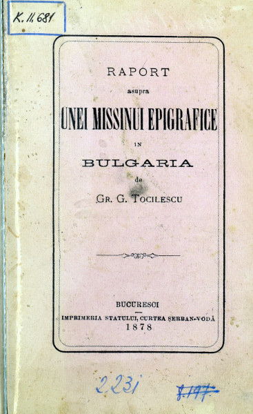 Raport asupra unei misiuni epigrafice in Bulgaria