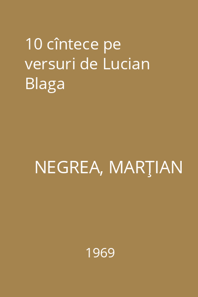 | Titlu | 10 cîntece pe versuri de Lucian Blaga |