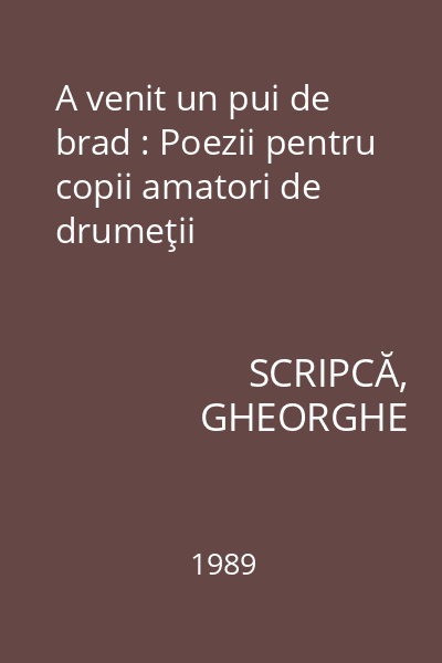 | Titlu | A venit un pui de brad : Poezii pentru copii amatori de drumeţii |