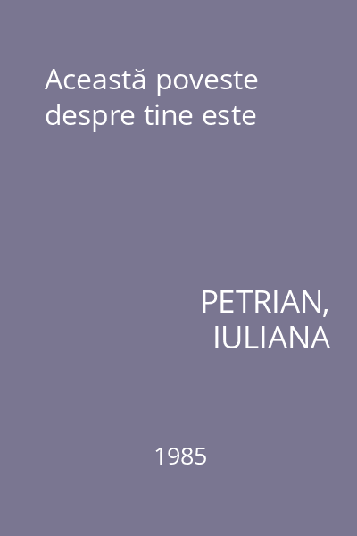 | Titlu | Această poveste despre tine este |