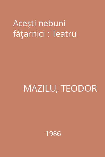 | Titlu | Aceşti nebuni făţarnici : Teatru |