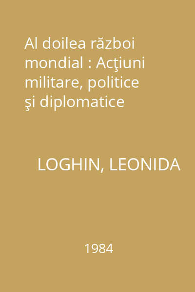 | Titlu | Al doilea război mondial : Acţiuni militare, politice şi diplomatice |