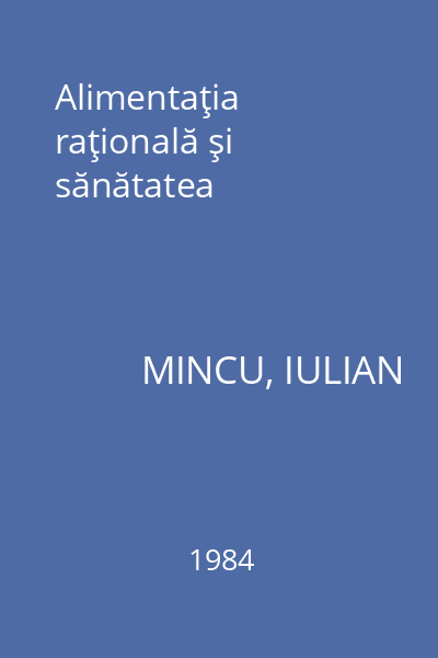 | Titlu | Alimentaţia raţională şi sănătatea |