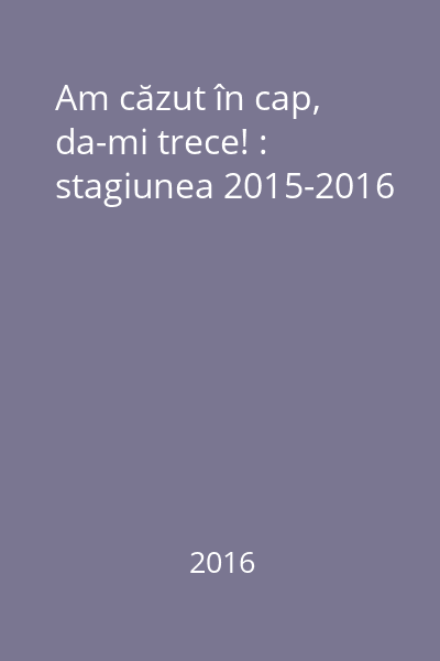| Titlu | Am căzut în cap, da-mi trece! : stagiunea 2015-2016 |