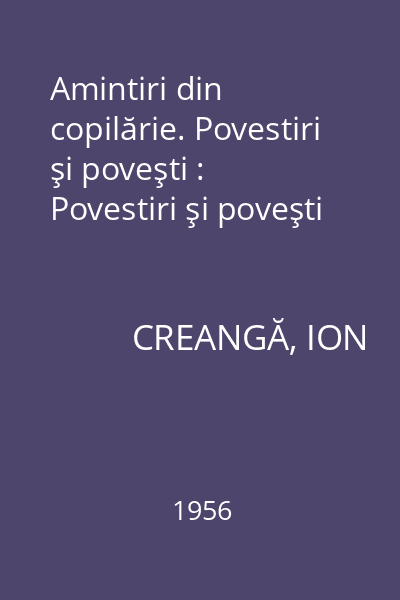 | Titlu | Amintiri din copilărie. Povestiri şi poveşti : Povestiri şi poveşti |
