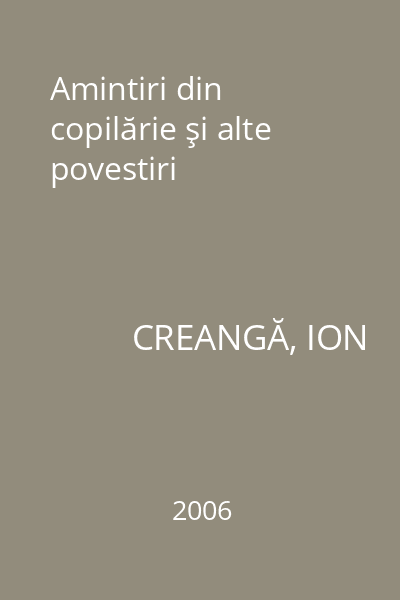 | Autor principal | CREANGĂ, ION |