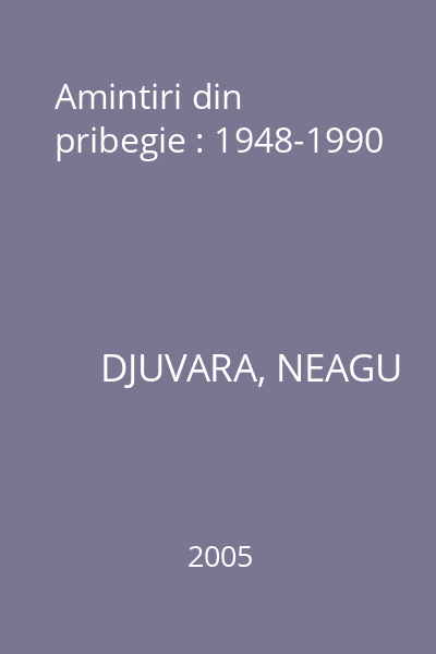 | Titlu | Amintiri din pribegie : 1948-1990 |