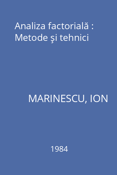 | Titlu | Analiza factorială : Metode şi tehnici |