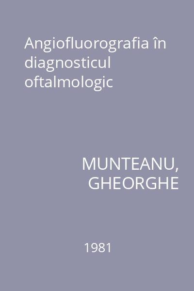 | Titlu | Angiofluorografia în diagnosticul oftalmologic |