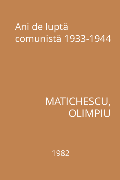 | Titlu | Ani de luptă comunistă 1933-1944 |