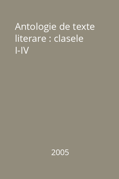 | Titlu | Antologie de texte literare : clasele I-IV |