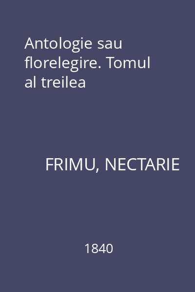 | Titlu | Antologie sau florelegire. Tomul al treilea |