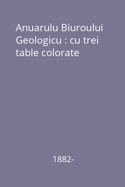 | Titlu | Anuarulu Biuroului Geologicu : cu trei table colorate |