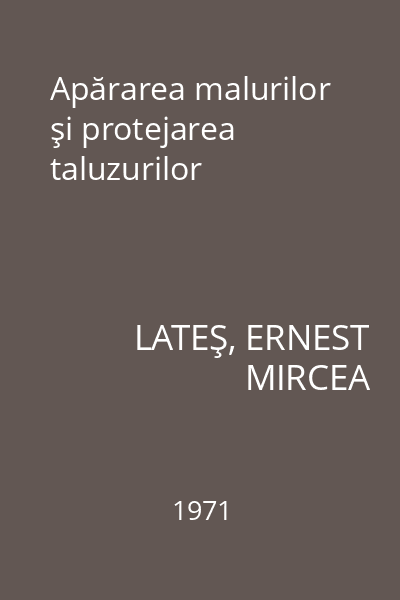 | Titlu | Apărarea malurilor şi protejarea taluzurilor |