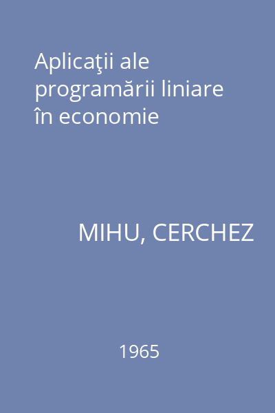 | Titlu | Aplicaţii ale programării liniare în economie |