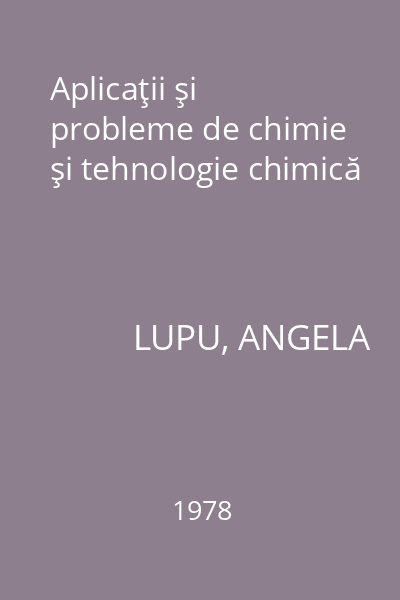 | Titlu | Aplicaţii şi probleme de chimie şi tehnologie chimică |