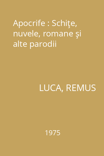 | Titlu | Apocrife : Schiţe, nuvele, romane şi alte parodii |