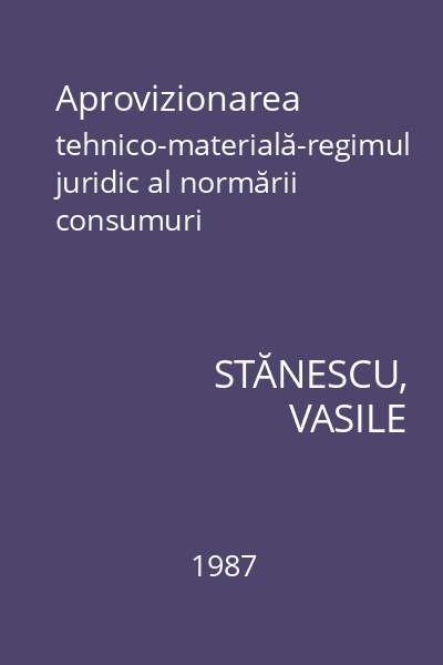 | Titlu | Aprovizionarea tehnico-materială în industrie |