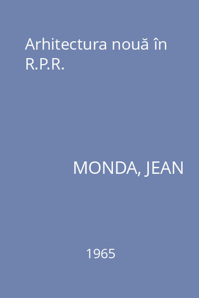 | Titlu | Arhitectura nouă în R.P.R. |