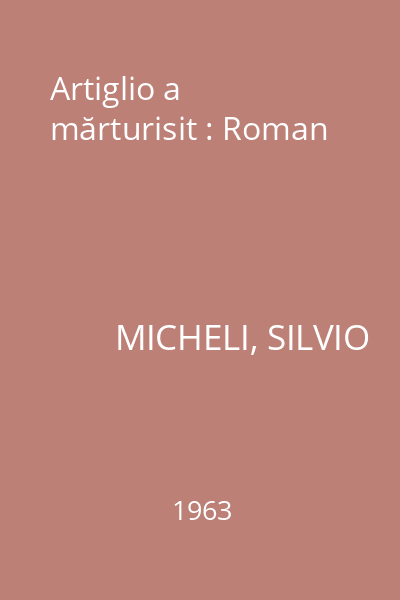 | Titlu | Artiglio a mărturisit : Roman |