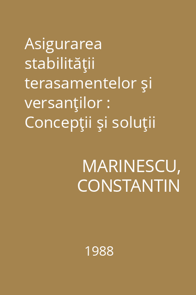 | Titlu | Asigurarea stabilităţii terasamentelor şi versanţilor : Concepţii şi soluţii moderne vol. 1 |