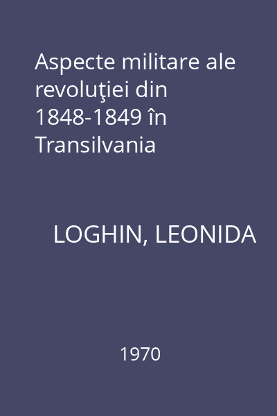 | Titlu | Aspecte militare ale revoluţiei din 1848-1849 în Transilvania |