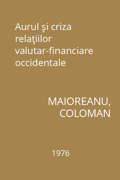 | Titlu | Aurul şi criza relaţiilor valutar-financiare occidentale |