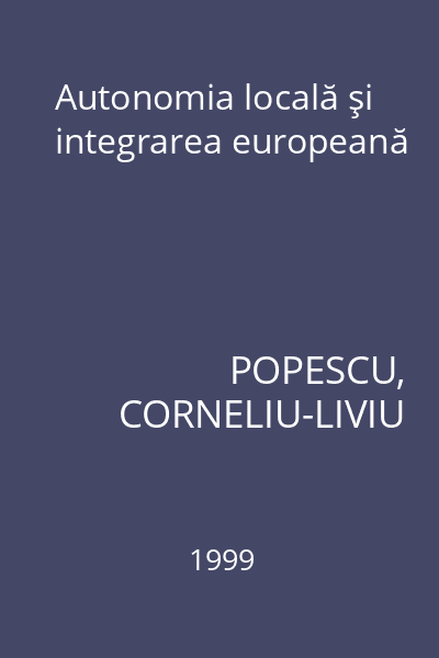 | Titlu | Autonomia locală şi integrarea europeană |