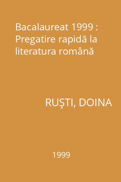 | Titlu | Bacalaureat 1999 : Pregatire rapidă la literatura română |