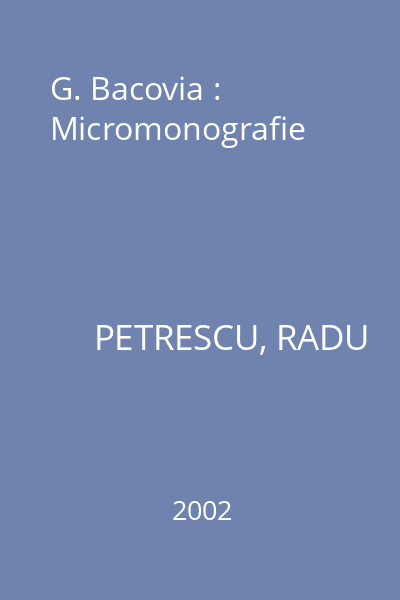 | Număr (indice) CZU | 859.0.09Bacovia G. |
