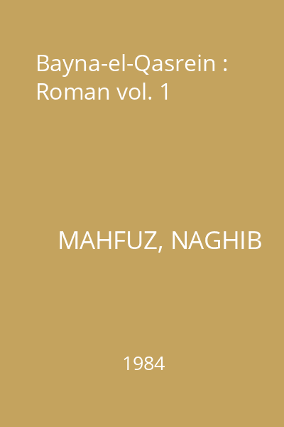 | Titlu | Bayna-el-Qasrein : Roman vol. 1 |