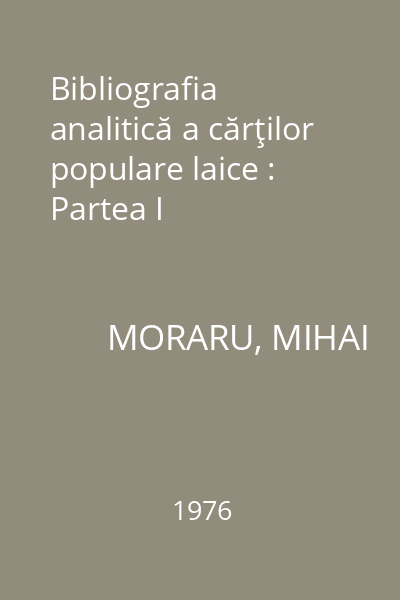 | Titlu | Bibliografia analitică a cărţilor populare laice : Partea I |