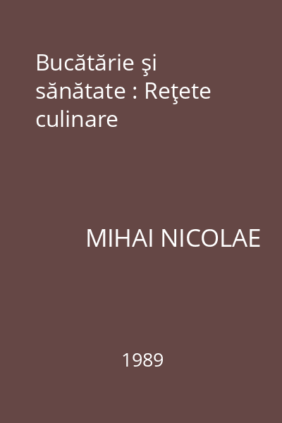| Titlu | Bucătărie şi sănătate : Reţete culinare |