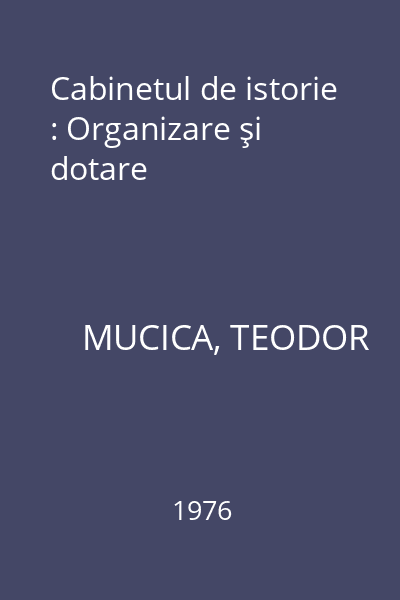 | Titlu | Cabinetul de istorie : Organizare şi dotare |