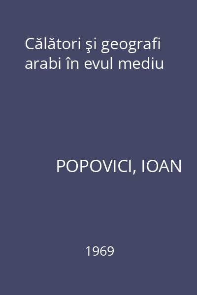 | Titlu | Călători şi geografi arabi în evul mediu |