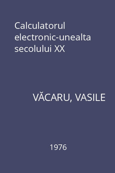 | Titlu | Calculatorul electronic-unealta secolului XX |