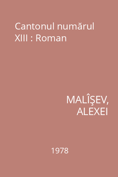 | Titlu | Cantonul numărul XIII : Roman |