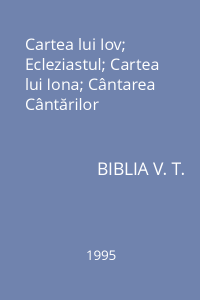 | Alte informaţii la titlu | Versiune revizuită după Septuaginta redactată şi comentată de Bartolomeu Valeriu Anania, sprijinit pe alte osteneli |
