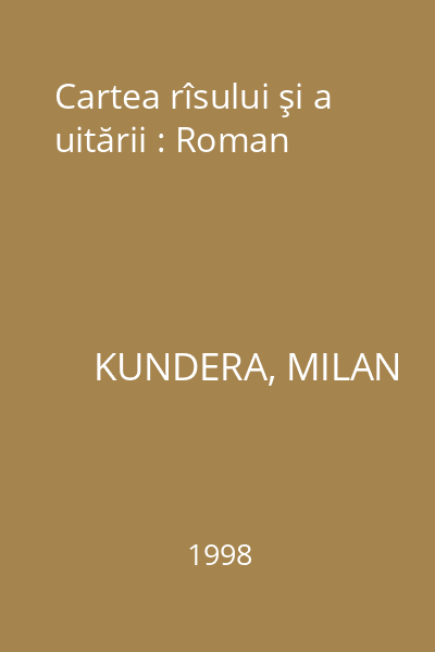 | Titlu | Cartea rîsului şi a uitării : Roman |