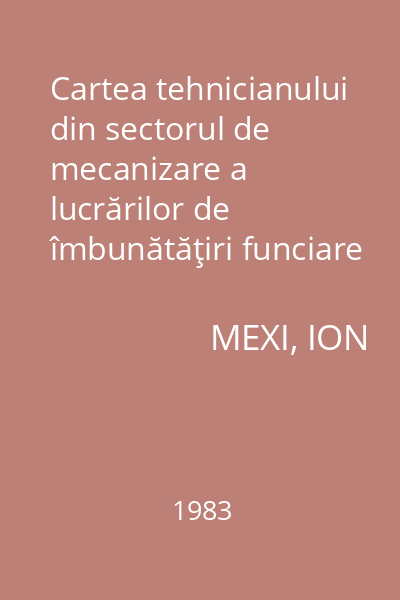 | Titlu | Cartea tehnicianului din sectorul de mecanizare a lucrărilor de îmbunătăţiri funciare |