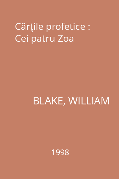 | Titlu | Cărţile profetice : Cei patru Zoa |